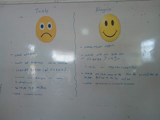 Se empezó la actividad hablando con los niños sobre que son las emociones, cuales son y como manejarlas a diario, luego se paso a hablar sobre la tristeza y la alegría explicando cada una de estas emociones, después de la explicación, cada niño salio al tablero y escribió que situación lo pone triste o alegre.
